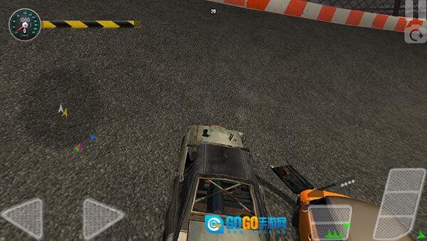 4、驾驶你的赛车肆意碰撞、尽情破坏吧!左侧控制方向,右侧负责油门与刹车,左上角是码表,正中间则是地图。