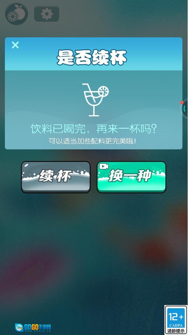 2、点击屏幕模拟饮用,饮料喝完后,选续杯重复制作同款,或换一种尝新。