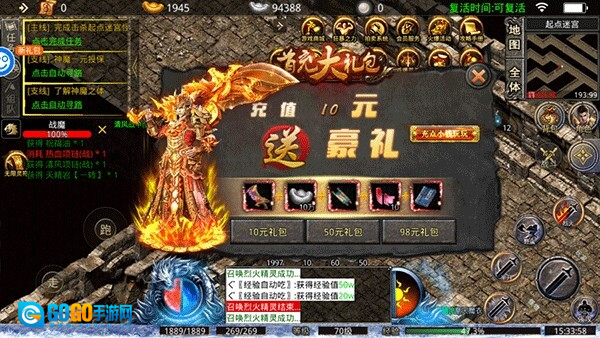 游戏设有首充福利,上线后能快速挑战并击败大陆BOSS,获取丰厚经验值,激活狂暴状态;接着迅速消灭200只小怪即可完成VIP任务。别忘了进入秘境副本,在这里击杀怪物不仅能拿到灵符奖励,还能收获大量装备道具。