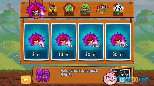 相信大家对这款游戏的玩法已经很熟悉了,不过我还是想再简单说明一下:通过弹弓发射小鸟,把远处的猪头全部击落就能通关。玩家的目标是用最少的小鸟消灭所有猪头。除了基础的小红鸟,还有多种带特殊技能的小鸟,点击屏幕就能触发技能。这次更新的版本里,新登场的炸弹黑鸟拥有强大的地磁波能力,能释放极具威力的冲击波,绝对是得力的战斗伙伴。