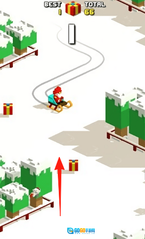 2、目标收集:在蜿蜒开阔的赛道上,玩家需要收集礼物盒,让“TOTAL(66→471)”的累计数量不断增加,全力冲击“BEST(1)”的记录。
