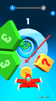 1、操控红色飞机进入螺旋通道后,要优先收集带有数字标识的绿色方块,这类方块是推动关卡进度的核心道具。