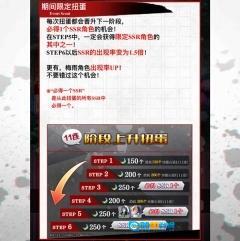 在此之后我们就可以抽活动卡池了,十连抽正常需要250异能石抽取一次,活动卡池一般都是阶段性的,一共分为六个阶段,第一阶段只需要150异能石,第二个阶段需要200异能石,第三个阶段需要250异能石,但是会必得一个SSR卡,第四个阶段重新降回200异能石,第五个阶段需要250异能石,但是会必得一张SSR的活动角色卡,到了第六个阶段以后需要250异能石,但是抽取SSR的几率会提升至1.5倍,而且不限抽取次数。
