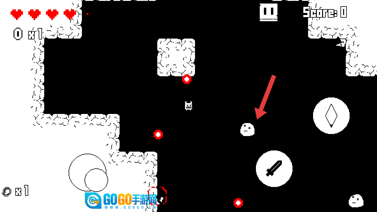 1、在游戏开局,需要优先移动角色收集白色金币,白色金币是由消灭敌人后出现的,积累金币资源为后续冒险做准备。