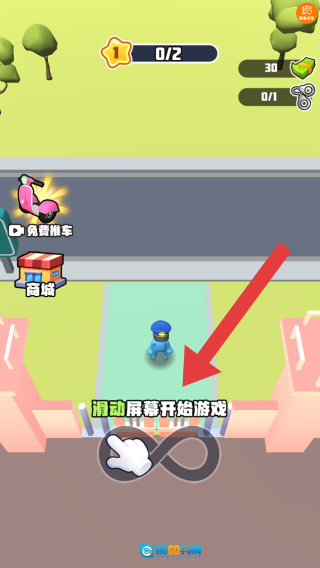 1、玩家处于游戏初始前的场景,根据屏幕的文字提示:滑动屏幕开始游戏,可以根据此提示进行操作。