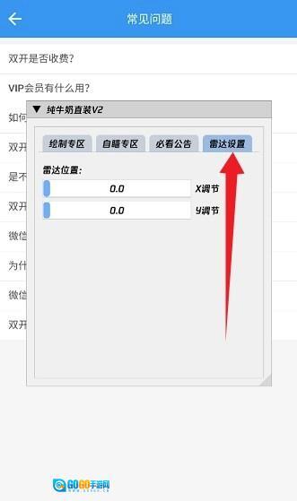 6、再比如【雷达设置】,能够通过设置【x,y的值】来明确雷达的位置