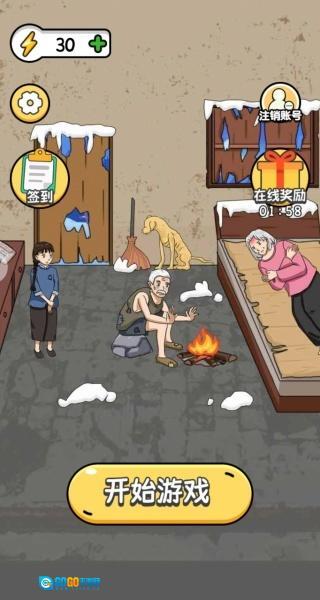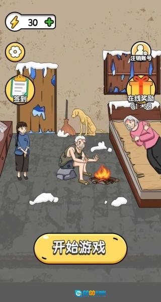1、进入游戏后,你会看到奶奶、爷爷和孙女都冻得瑟瑟发抖,点击“开始游戏”按钮就能进入游戏界面。
