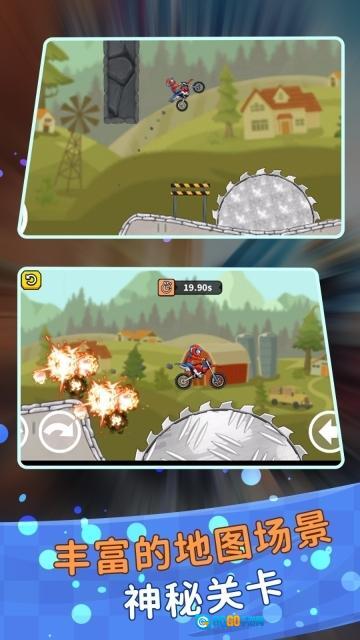 3、设置了悬挂系统、传动比、轮胎规格等二十多项可调节参数。车辆的调校工作需要结合赛道的具体特点来进行针对性调整,这会直接作用于驾驶体验。1、借助重力感应来操控车辆平衡,虚拟按键则负责控制油门与刹车。在空中时能够调整车身姿态,以保证完美着陆。
