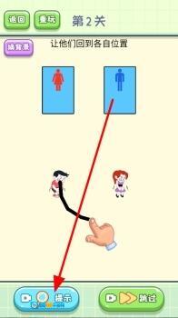 4、若在关卡挑战时遇到困难,可点击提示按钮获取相关提示,借助提示更顺利地完成画线与人物归位操作。