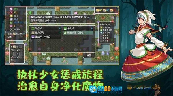 执杖少女惩戒术是一款结合了策略与回合制战斗的RPG。玩家将扮演一位牧师少女,踏上穿越迷雾森林、神秘塔楼和充满黑暗魔力的峡谷的旅程。利用治疗术、神圣祝福、净化术和惩戒术等技能,结合装备系统和敌人战术,逐步挑战强大的敌人,最终面对黑暗魔王,为恢复世界的秩序而战。