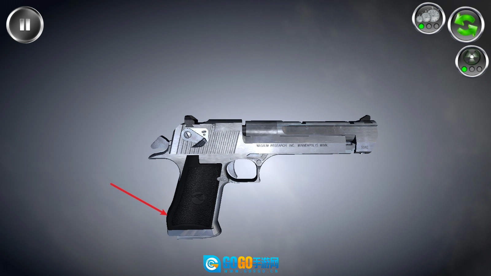 1、我们拿手枪来举例。首先要做的是取下手枪的弹夹,绝大多数武器的第一步操作都是取下弹夹。