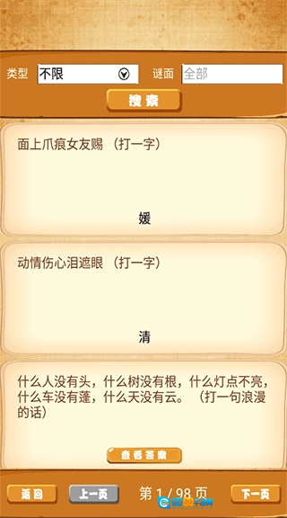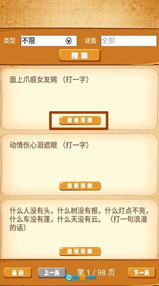 在谜语列表里,点击任意题目右边的“查看答案”按钮。
