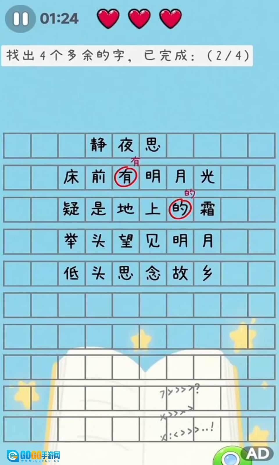 标点符号纠错:检查句子中标点的使用是否恰当(像“你喜欢苹果,还是香蕉?”是否应该使用问号这类情况)。2. 闯关指南