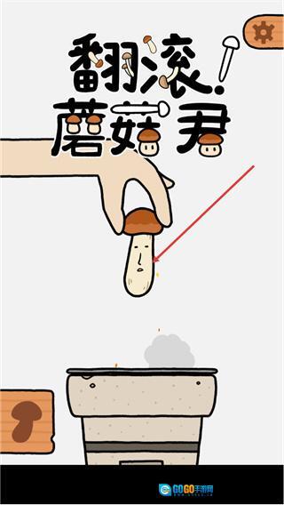 进入翻滚蘑菇君游戏后,根据提示拖动手中的蘑菇向下方的锅移动,让蘑菇掉落到锅里,这样就能推进游戏进程了。