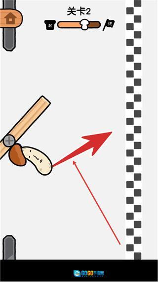 3、在关卡中,通过倾斜木板来调整蘑菇的翻滚方向,引导其向右侧的黑白格终点移动,使蘑菇到达该区域即可完成当前关卡。