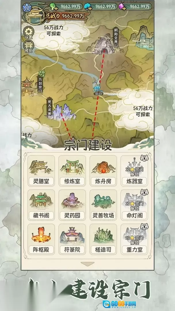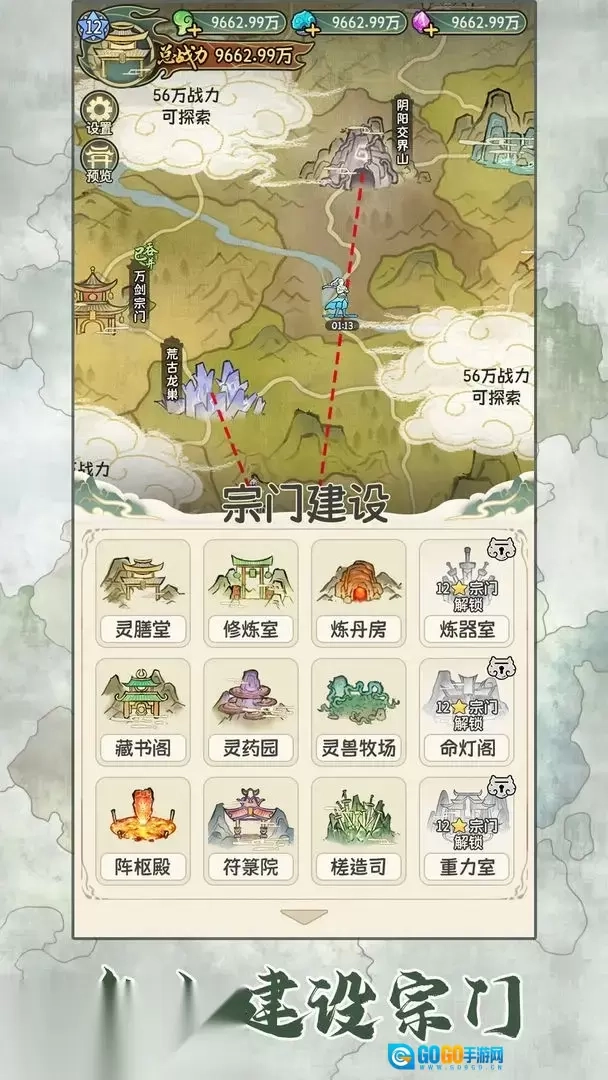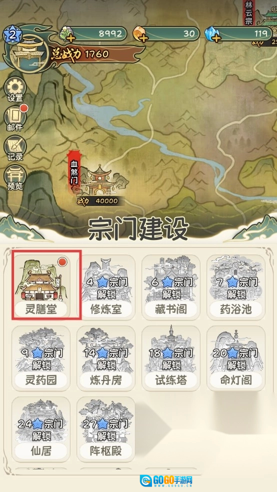 2、宗门建设时要优先升级【灵膳堂】,通过提升宗门建筑等级来解锁更多功能。