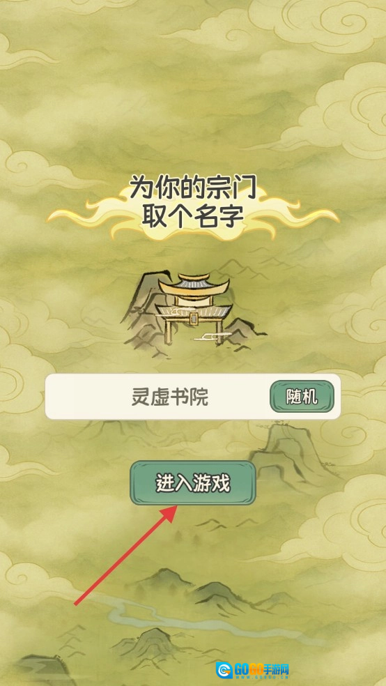 1、给宗门取好名字后点击【进入】按钮,即可开启你的修仙宗门经营之旅。