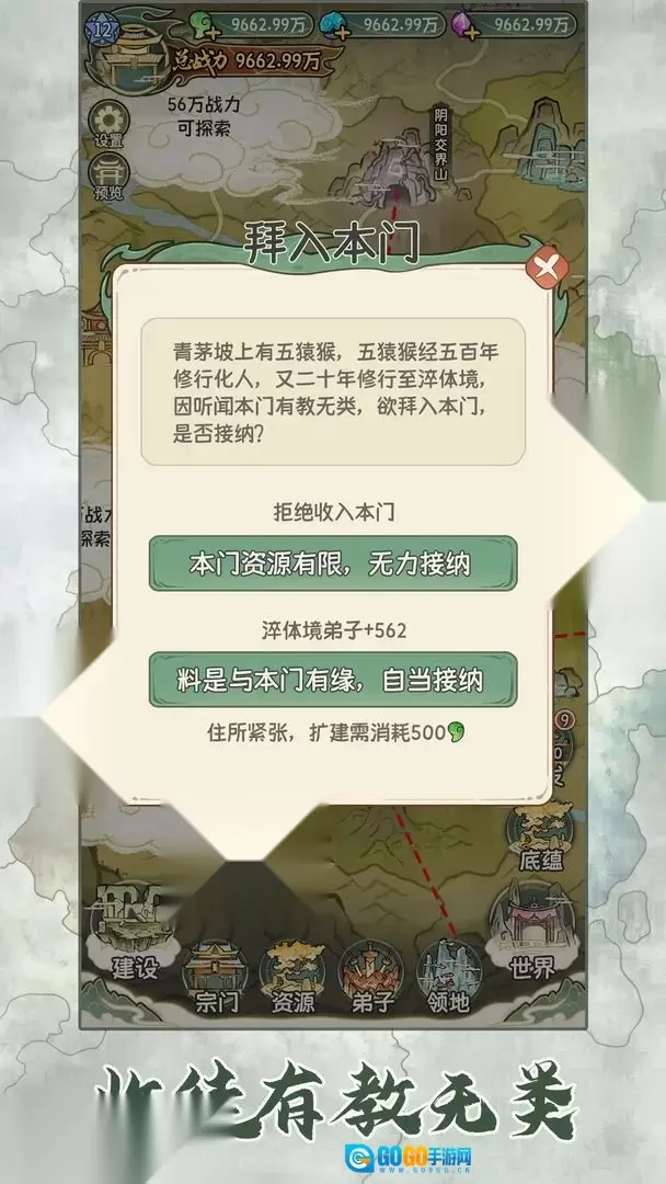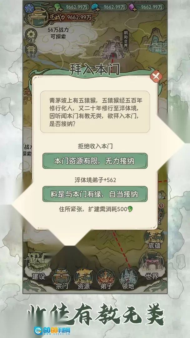 4、该玩法简单易懂,玩家的核心任务是统一修仙世界,让自己所在的门派成长为这片大陆上最强大的存在。