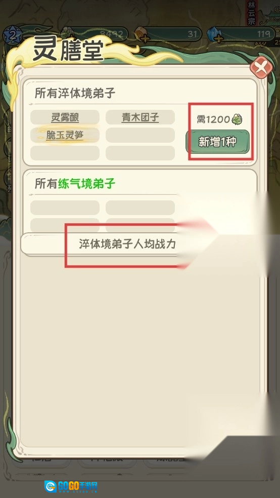 3、在灵膳堂消耗资源研发新菜品,能够提高淬体境弟子的人均战力,从而增强宗门的整体实力。