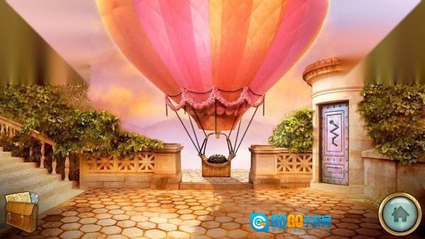 4、进入房间后,领取一勺鸟食,随后退出房间,在有花朵的路口左转,拾起太阳雕像,同时记下牵牛花的图案;接着上楼梯,看到无法启动的热气球,继续上楼梯,取到斧头,喂给小鸟食物,并记录下鸟儿的图案。