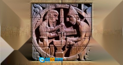 3、继续前行,遇到岔路时右转,前方会出现一扇门,将拼图拼好就能打开这扇门