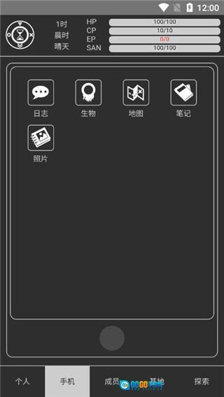 3、点击手机后,能看到生物、地图、笔记、照片等若干功能。