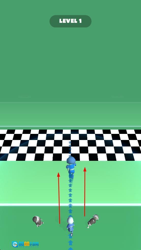 进入LEVEL1关卡后,操控蓝色角色在绿色赛道上前进,通过拖动来调整移动方向,开启竞技跑酷挑战。