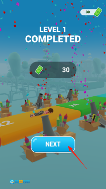 3、成功通关后,点击NEXT按钮进入下一阶段,在此过程中既能领取奖励、查看通关成果,也能为后续关卡做好准备,同时体验关卡的推进机制。
