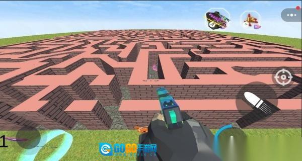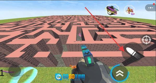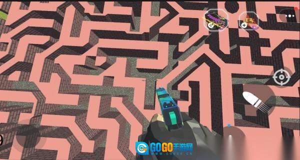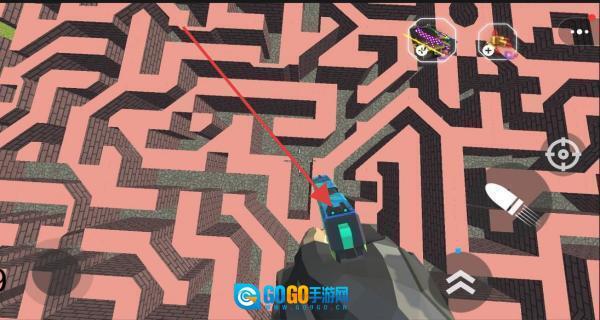 3、当面对迷宫的围墙时,依据红色的指引,点击武器图标进行射击,以此打破障碍,然后继续展开探索。