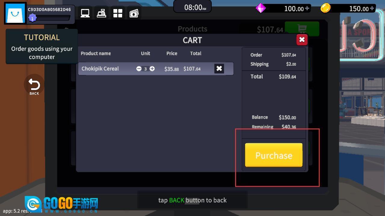3、进入商品采购界面,挑选好所需商品后,点击Purchase按钮,即可完成商品采购操作,为超市补充相应货物。