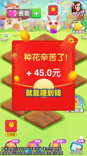 3、收益途径多样化:除了通过种植花束获取奖励,游戏还设置了签到、观看视频等其他领取红包的方式,让玩家拥有更多样化的收益渠道。