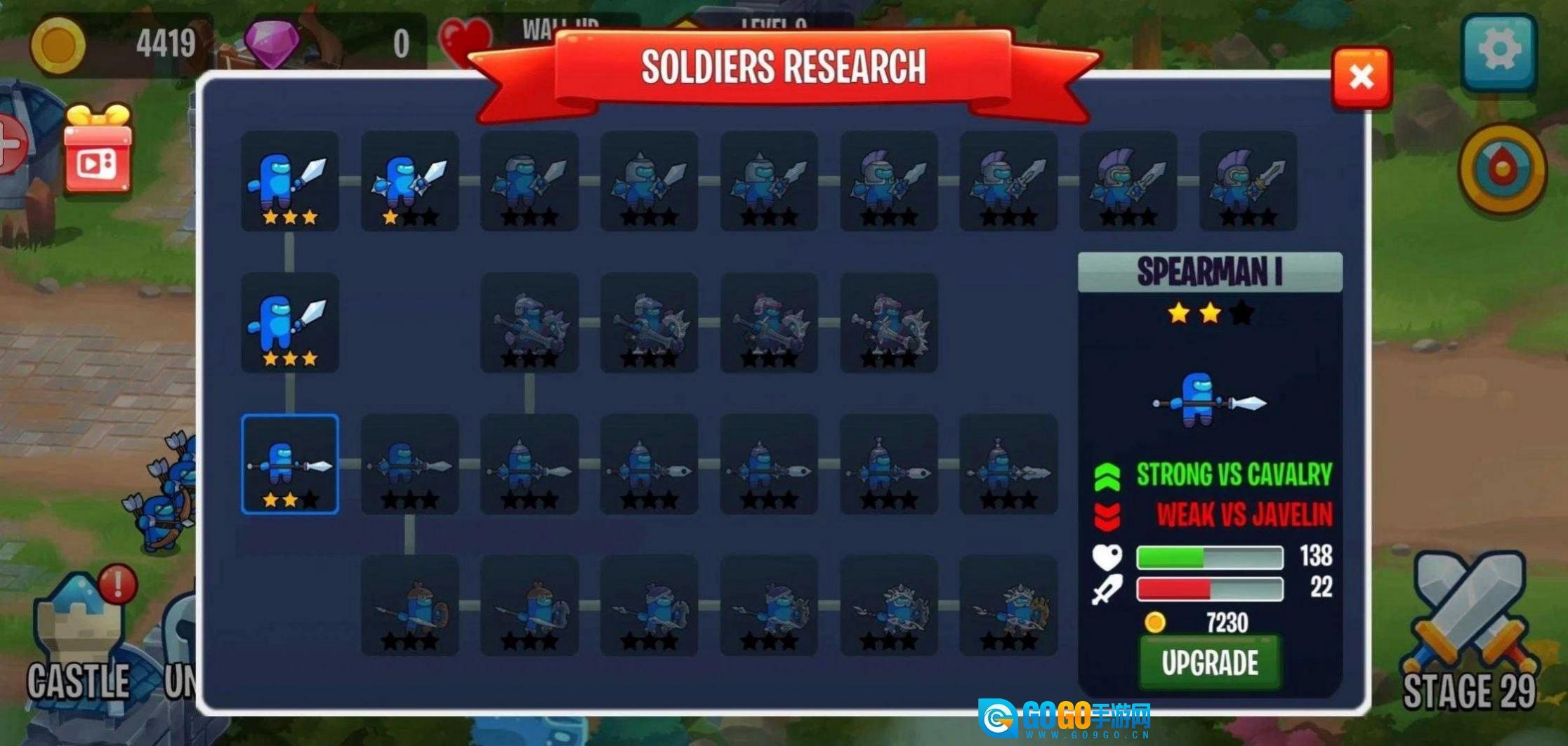 2、赶紧解锁武器装备,升级你的士兵阵容,尽情释放超强战斗力!