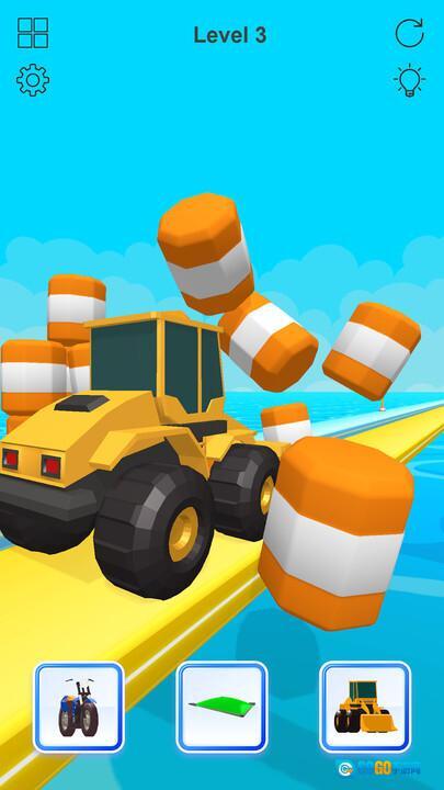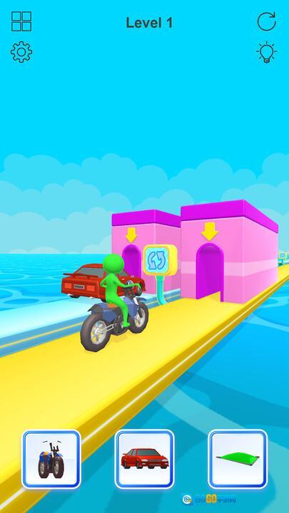 进入游戏后,屏幕下方会出现三个不同的交通工具按钮,它们分别对应摩托车、汽车和滑翔翼。你可以根据当前赛道的实际情况以及自身的需求,点击其中任意一个按钮,从而选择对应的交通工具。