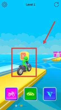 2、若选择摩托车,角色会驾驶摩托车在赛道上行驶,此时需操控摩托车避开赛道上的障碍物,例如遇到带有红色错误标志的方块时,就要选择正确的座驾。