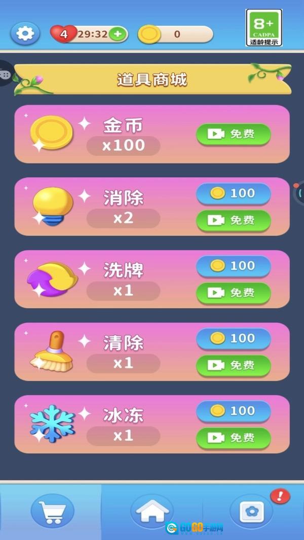 3.道具的灵活运用:当牌面呈现混乱状态,或者无法再进行配对操作时,借助洗牌、提示、清除之类的道具,能够助力你重新找回节奏,从而突破当前的难关。