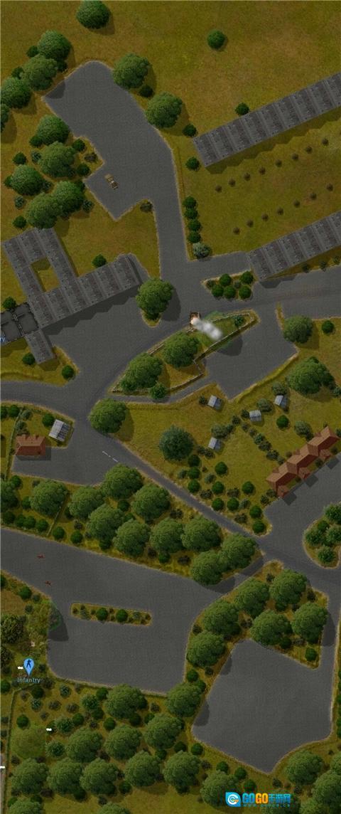 5、我方步兵单位与部分装甲单位穿过建筑区域后,我方坦克遭右方反坦克炮击毁。