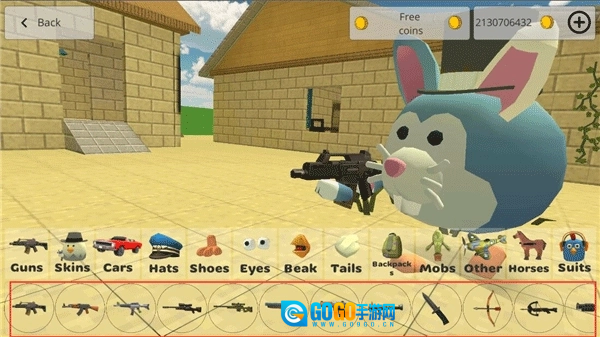 2、首先我们要点击Guns选项,这里相当于商店,我们能在这里选购各类武器。