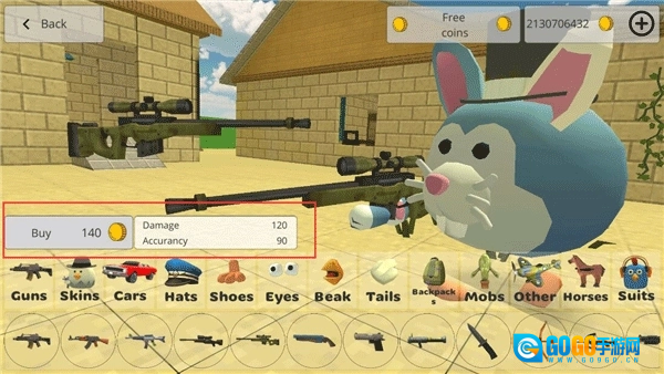 3、点击对应武器的上方区域,会显示出购买该武器所需的金币数量以及武器的属性信息,点击“Buy”按钮就能完成购买操作。