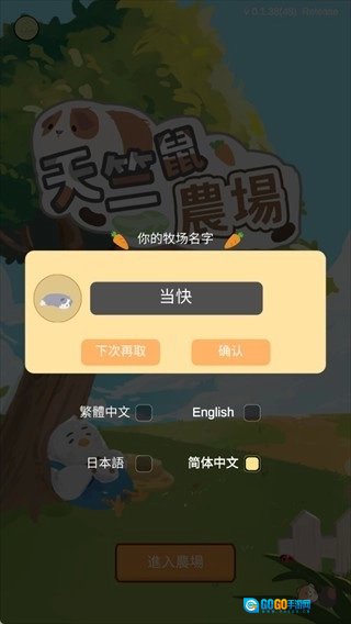 1、游戏启动后,首先要给你的牧场起一个既独特又悦耳的名字,由此开启专属于你的天竺鼠庄园生活!