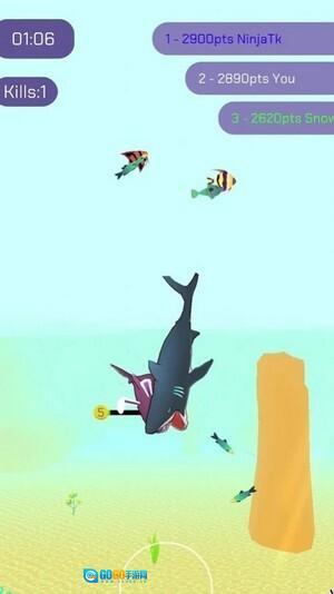 2、依靠不断吞噬小鱼来实现进化,以此获取强大的力量,最终成为海洋的王者。