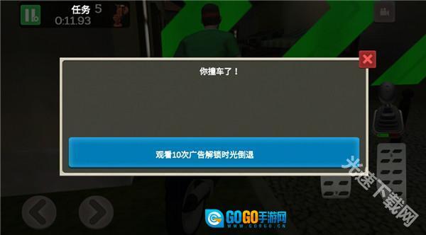 5、驾驶车辆时需小心避让建筑物与行人,一旦发生碰撞会导致任务失败,此时可使用“时间回溯”道具来继续游戏进程。