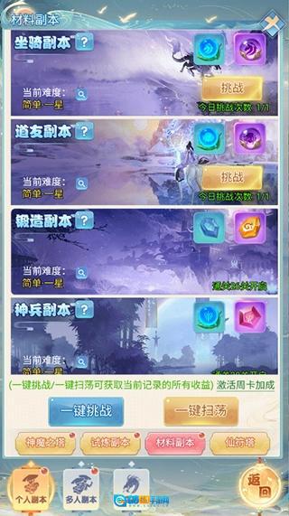 这个副本最值得期待的是修仙神器,此外还会产出元宝、天材地宝和淬火符。前期玩家主要攻略的是修仙之路,获取的资源能搭配炼器系统使用,帮助玩家更轻松地获得大量稀有装备。