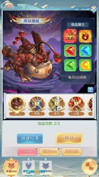 用竞技场荣誉点换玄铁令、洗炼石,强化装备,提升 PVP 战力。个人 BOSS: