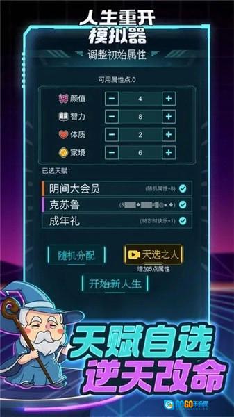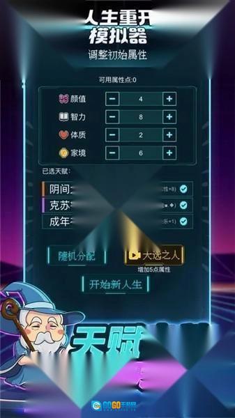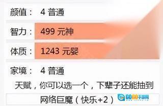3、随机获取初始属性,例如天赋、体质、家境、智力、美貌等。