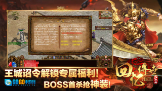 3、组队押镖赢取丰厚资源,王城诏令解锁专属福利,BOSS首杀争夺神装,技能强化助力战力飙升!
