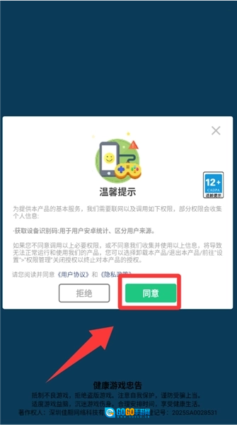 1、点击温馨提示里的同意并进入。