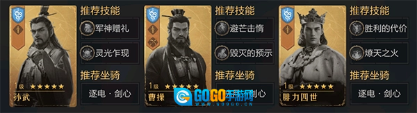 这套搭配很适合开荒阶段,能把各兵种的特性都发挥出来,建议前期尽量拿到孙武,用来替换其他紫色将领。