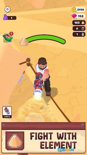当角色遇到障碍物时,会自动取出吸尘器来吸附这些沙尘。
