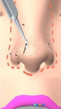 这款游戏的核心玩法是清洁鼻子,玩家可以为不同客户清理鼻腔,清理完成后直接贴上鼻膜,帮助改善鼻子皮肤状态。随着服务客户数量的增加,玩家不仅能获得持续收益,还能收获顾客的好评。