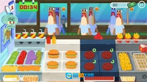 4、能够亲手制作出美味的螃蟹王汉堡,通过售卖赚取硬币来解锁更多菜品,而随着菜品种类的增多,顾客的需求也会相应提升。